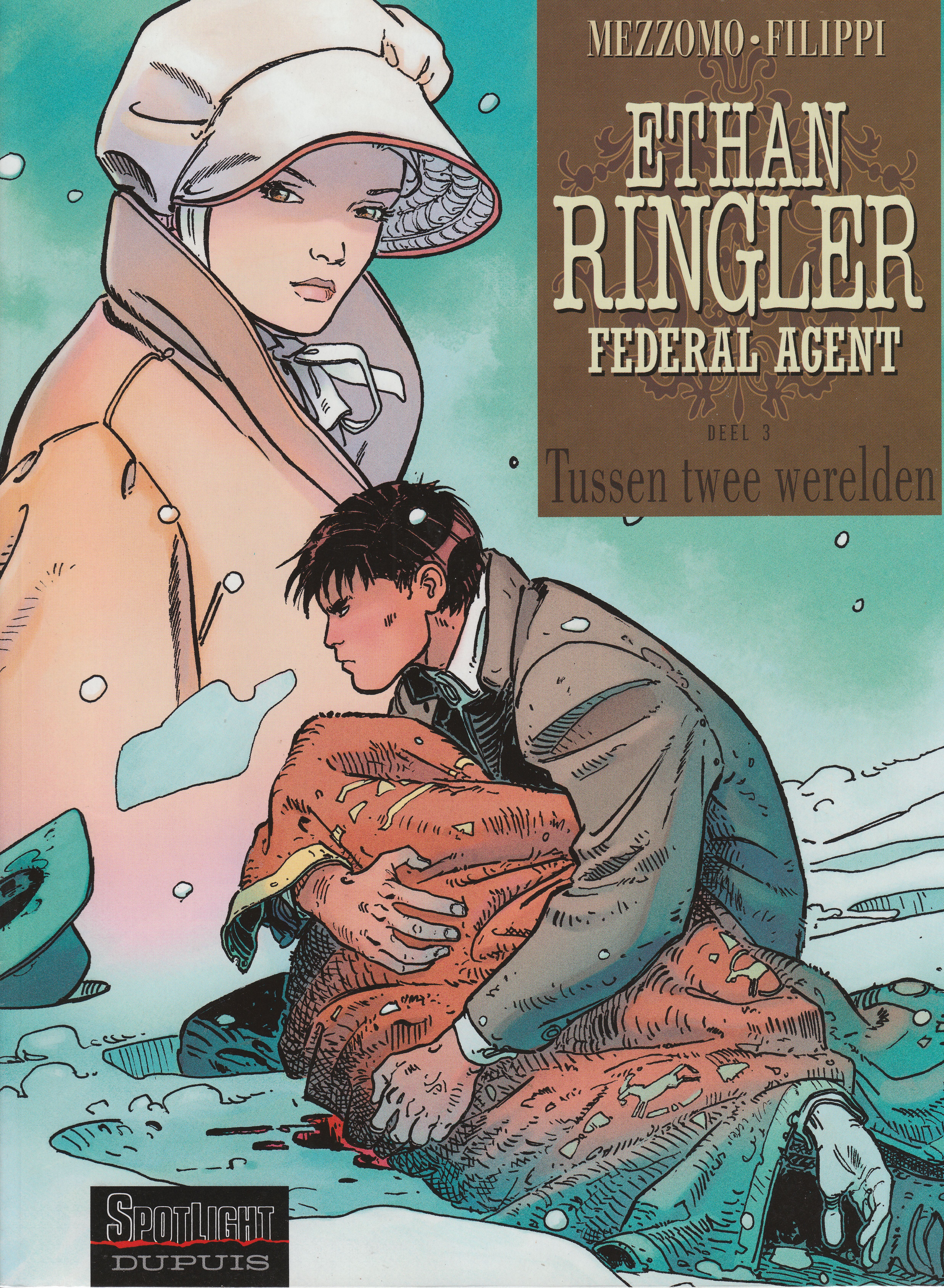 Hier als Band 3 der Serie "ETHAN RINGLER FEDERAL AGENT" in Niederländisch das Comicalbum "Tussen twee werelden" = Zwischen zwei Welten = Originaltitel "Quand viennent les ombres":