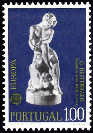In Portugal erschienen die Europamarken 1974 am 29. April 1974. Hier die Marke zu 1,00 Escudo zu dem Gemeinschaftsthema "Skulpturen", die in einer Auflage von 9 000 000 Stück erschien. Die Marken zeigen die Statue "O Desterrado (Der Verbannte)" von Antonio Soares dos Reis (1847-1889).