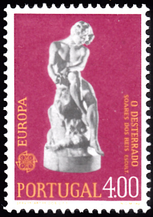In Portugal erschienen die Europamarken 1974 am 29. April 1974. Hier die Marke zu 4,00 Escudo zu dem Gemeinschaftsthema "Skulpturen", die in einer Auflage von 2 000 000 Stück erschien. Die Marken zeigen die Statue "O Desterrado (Der Verbannte)" von Antonio Soares dos Reis (1847-1889).