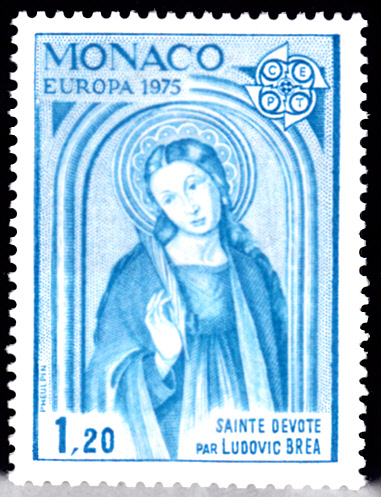 Auf der Europamarke 1975 zu 1,20 Franc aus Monaco (MiNr 1168) ist das Altargemälde "HI. Dévote" von Ludovic Bréa abgebildet.