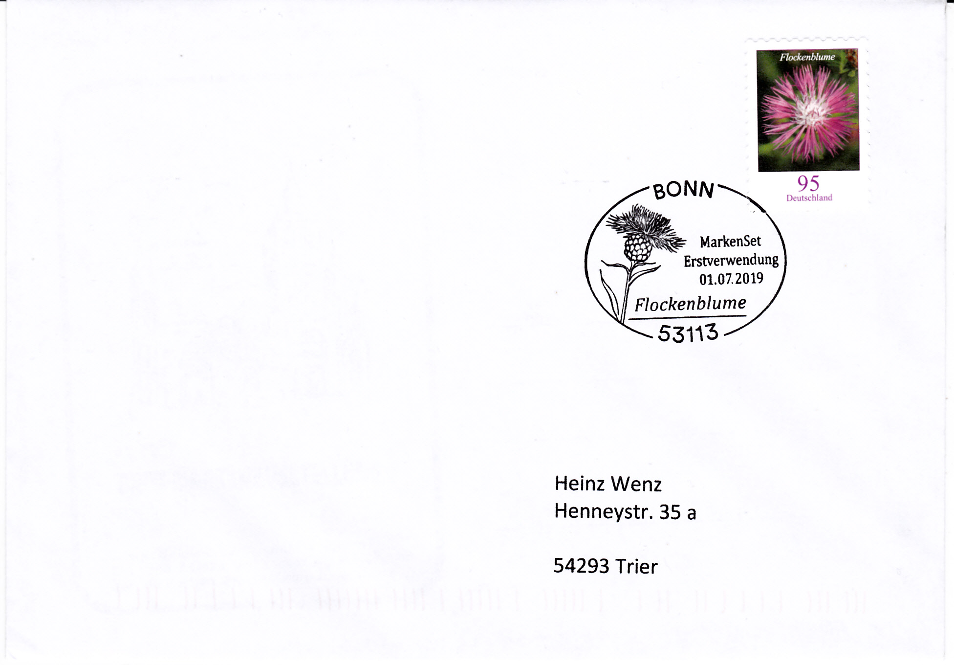 Im Erstverwendungsstempel der selbstklebenden Marke (MiNr 3483) aus dem Markenset oder Folienblatt (MiNr Folienblatt 90) wird ebenfalls die Blüte einer Flockenblume (Centaurea sp.) gezeigt.