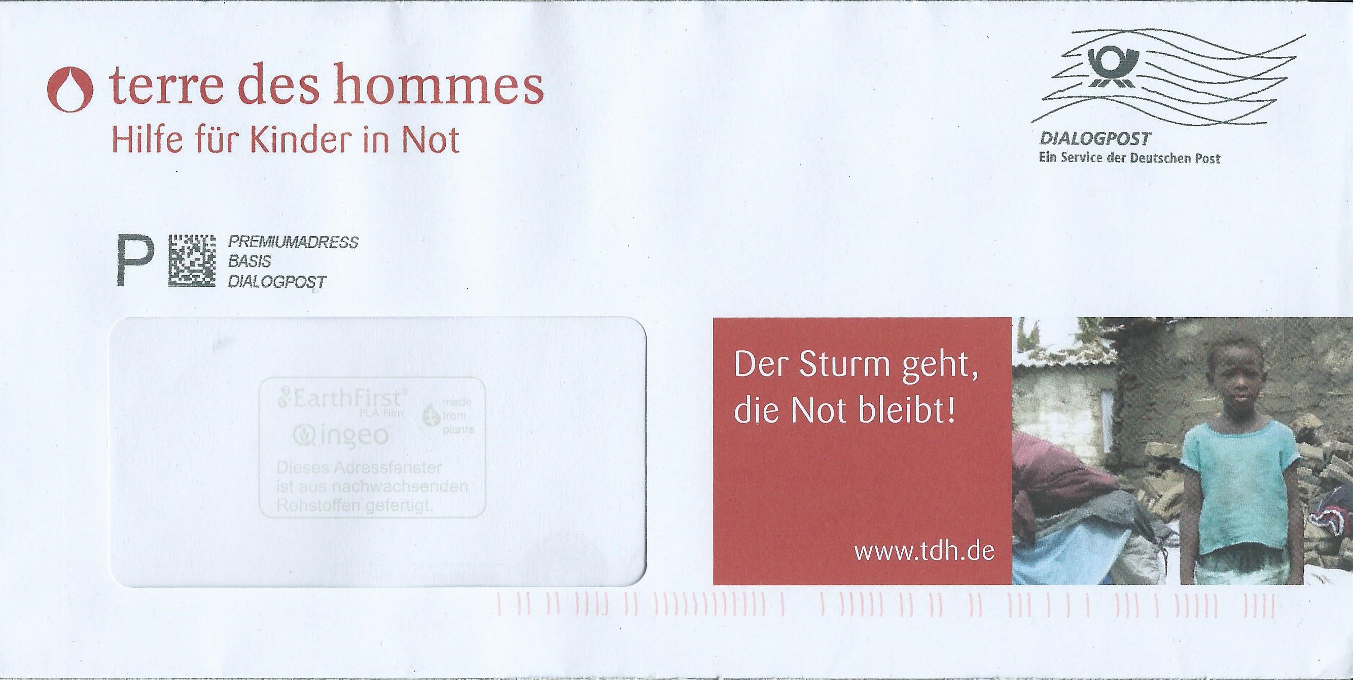 Und als 4. Beleg Brot für die Welt, ebenfalls mit Frankierwelle ohne markenähnlichen Zudruck: