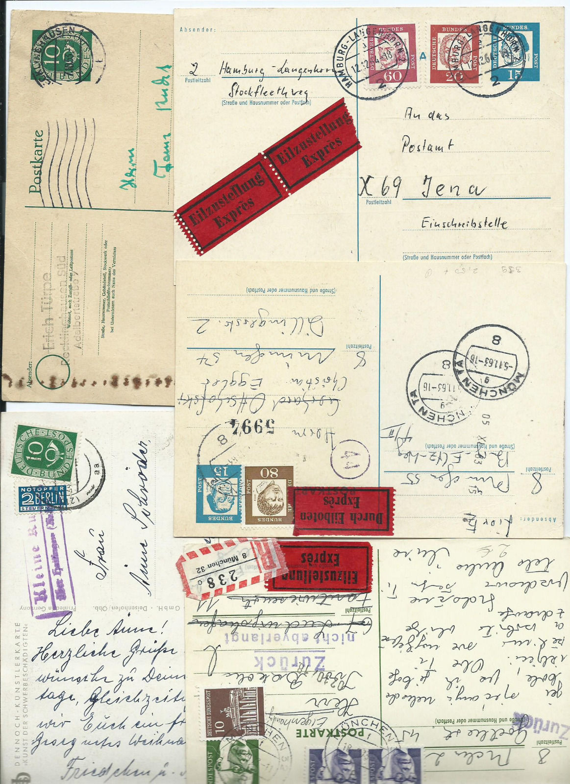 Hier sind mir die im 3. Bild gezeigten Ganzsachen aufgefallen, Postkarten per Eilboten sieht man nicht alle Tage, eine Orts-Postkarte per Eilboten wohl nochweniger.