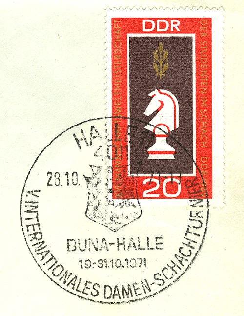 Zum V. Internationalen Damenschachturnier trafen sich Turnierspielerinnen 1971 in Halle/Saale. Fast zwei Wochen kämpften die Brett-Amazonen um den Sieg. Wer gewann, kann ich leider nicht mitteilen.