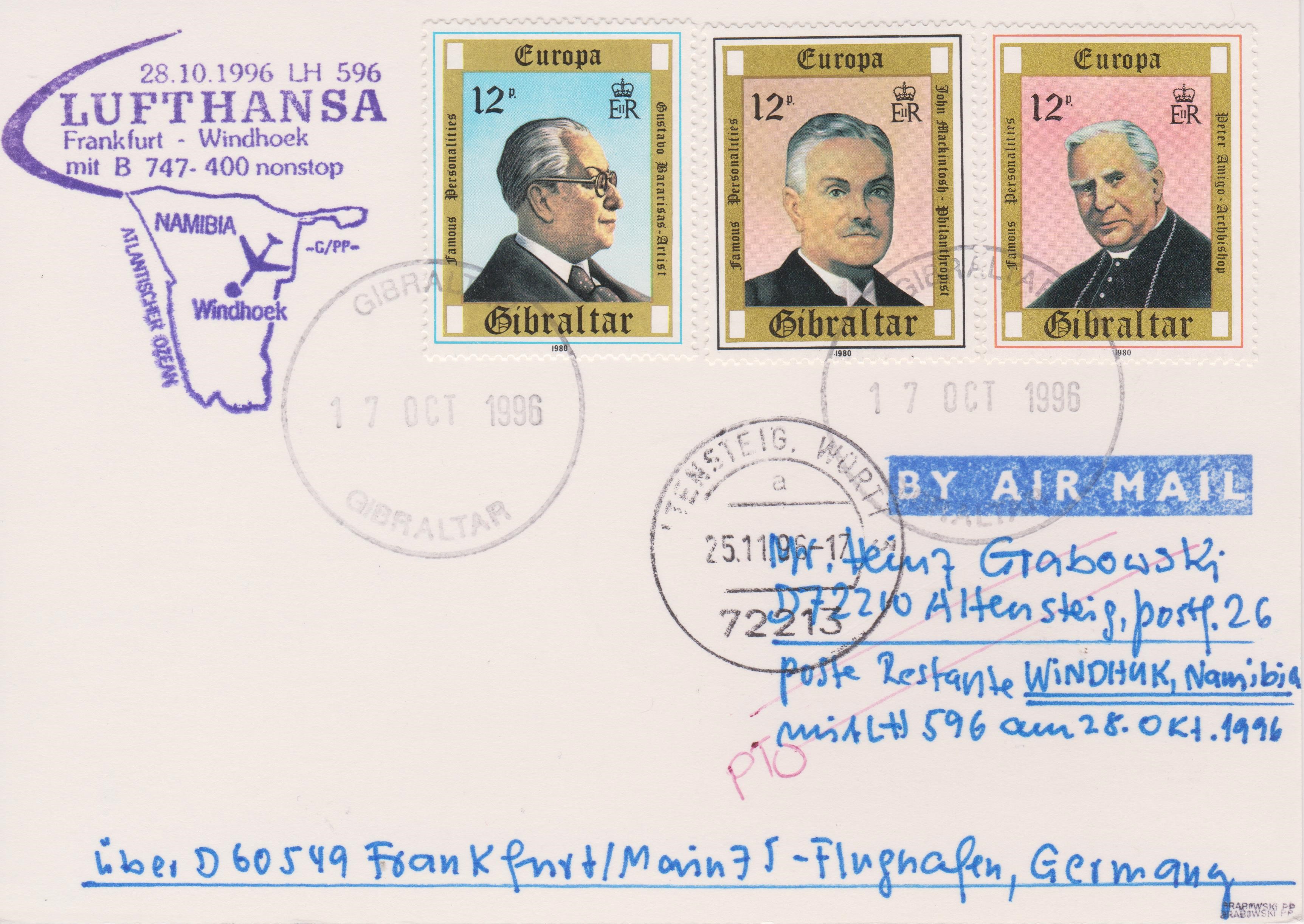 Foren-Übersicht Fragen und Diskussion Übersee Afrika Namibia Post nach Namibia Erstflug LH 596 am 28.10.1996 von Frankfurt nach Windhoek