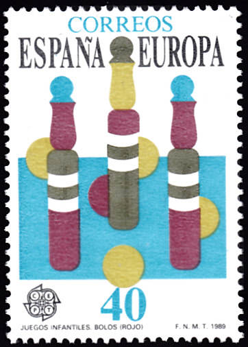In Spanien erschien eine Europamarke 1989 (MiNr 2885) zum Gemeinschaftsthema "Kinderspiele" mit einem Kegelspiel.