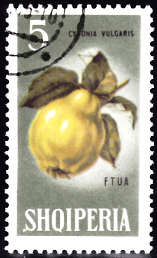 Eine weitere Marke aus Albanien (MiNr 916) bildet eine Quitte (Cydonia oblonga) ab.