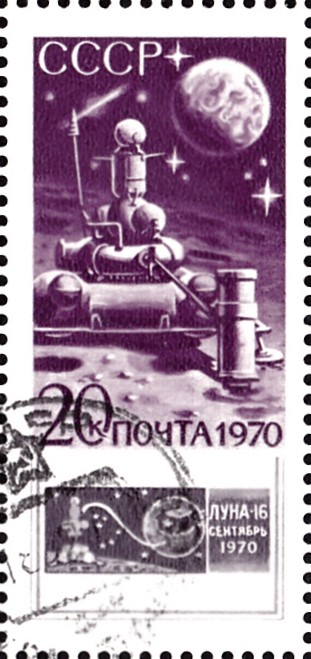 In der Sowjetunion erschien in einer Blockausgabe zur Mission von Luna 16 diese Marke (MiNr 3827) mit Luna 16 im Flug.