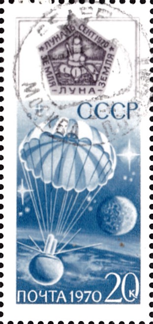 Jetzt kommt noch die Einzelmarke mit Luna 16 bei der Landung auf der Erde.