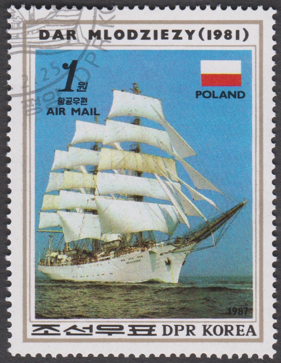 Nordkorea MiNr. 2816 zeigt das Vollschiff DAR MLODZIEZY:
