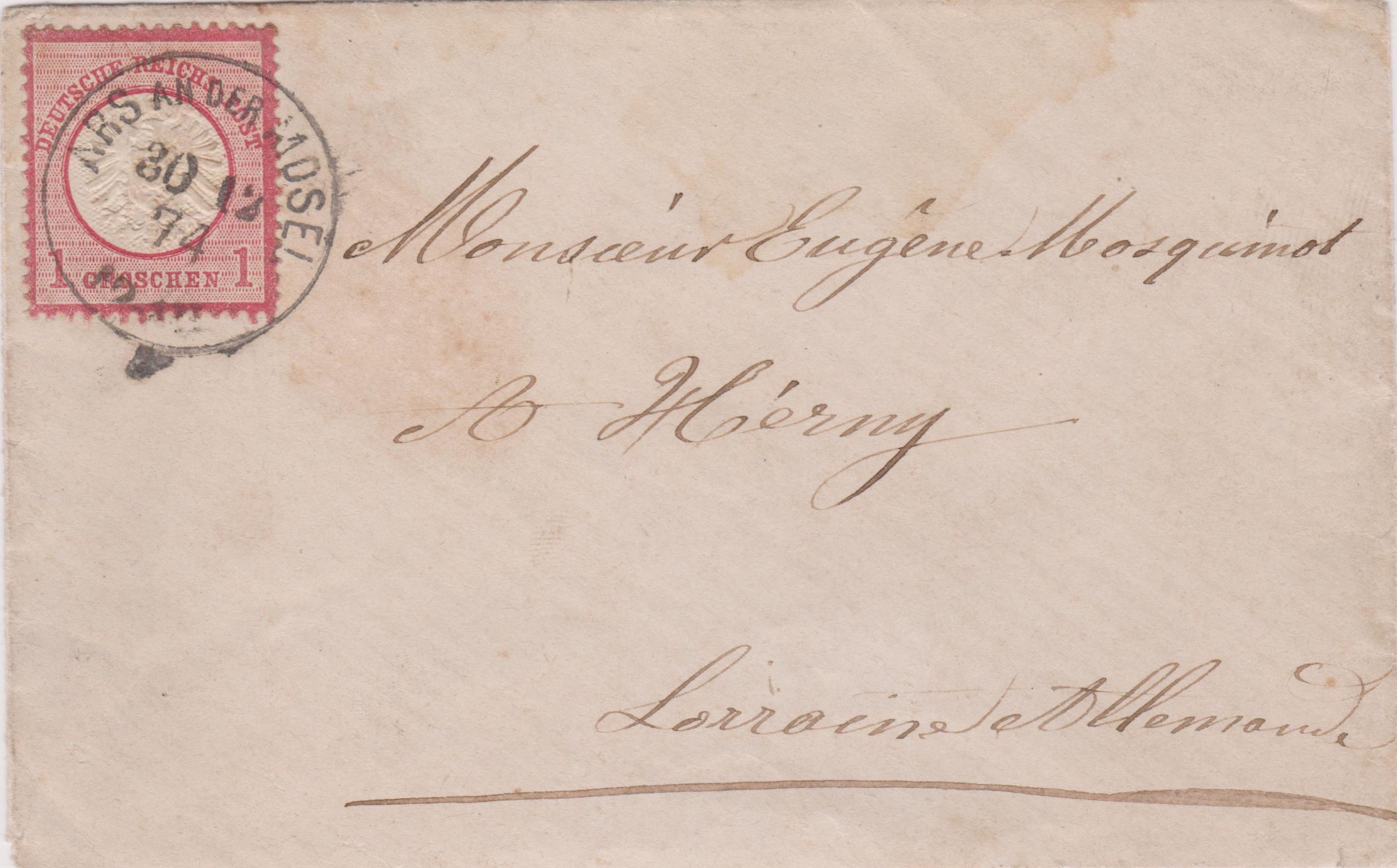 Hier ein Postvorschußbrief, adressiert nach "Herrengosserstedt bei Eckartsberge", aufgegeben am Freitag, dem 17.05.1872, in Merseburg: