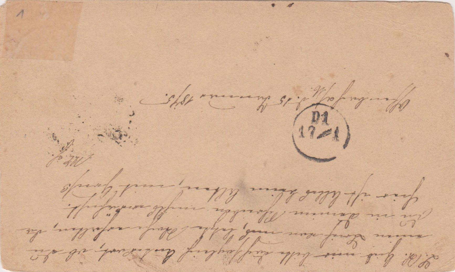 Bei der Einlieferung dieses Briefes erhielt der Absender 25 Silbergroschen als Postvorschuß, worauf ein violetter Stempel "Auslagen." hinweist. Als Porto für Postvorschußbriefe galt die Beförderungsgebühr wie für Wertbriefe, hier 1 1/2 Groschen für eine Entfernung von bis zu 5 Meilen, plus 1/2 Groschen je angefangenem Taler an Postvorschuß bei einer Mindestgebühr von 1 Groschen, die in diesem Falle erhoben wurde.