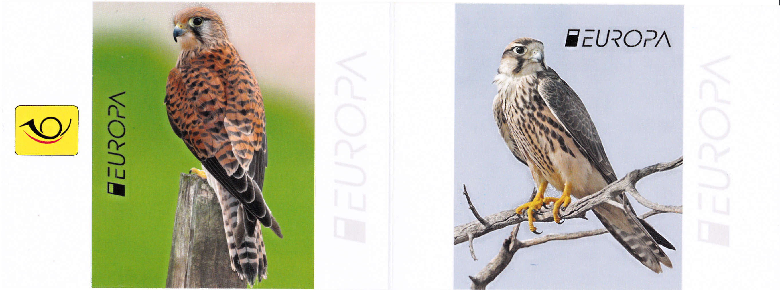 Die Europamarken 2019 sind in Nordmazedonien am 2. Mai 2019 zum Gemeinschaftsthema "Einheimische Vögel" erschienen. Hier zeige ich eine Marke zu 50 Denar aus einem Markenheftchen mit einem Rotfußfalkenpaar (Falco vespertinus). Die Auflage der Marke betrug 5 000 Stück.