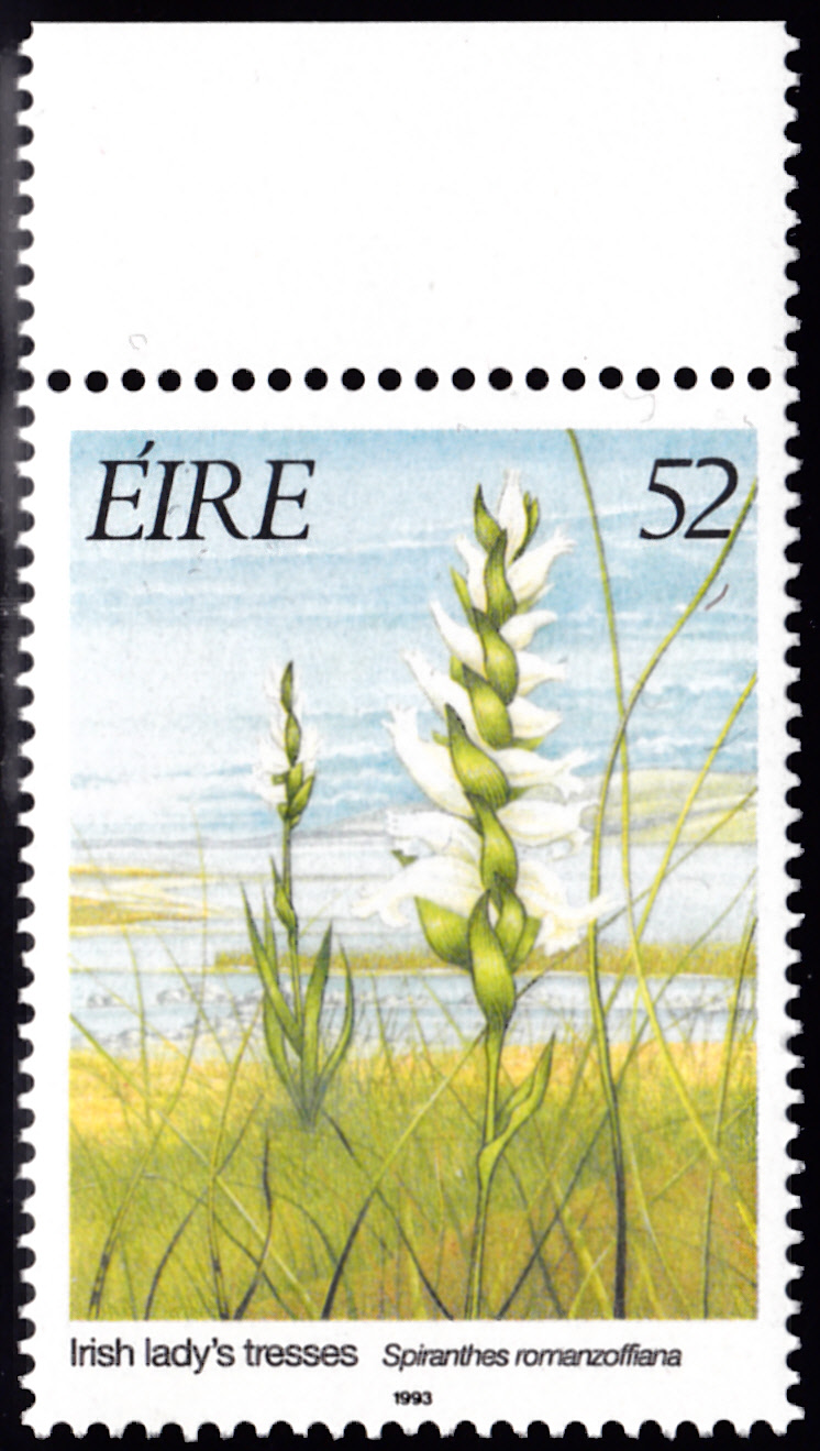 Diese matrke aus Irland zeigt uns die Romanzoffs Drehwurz (Spiranthes romanzoffiana), Michel verwendet hier den Namen Irish Lady´s Tresses (Spiranthes romanzoffiana):