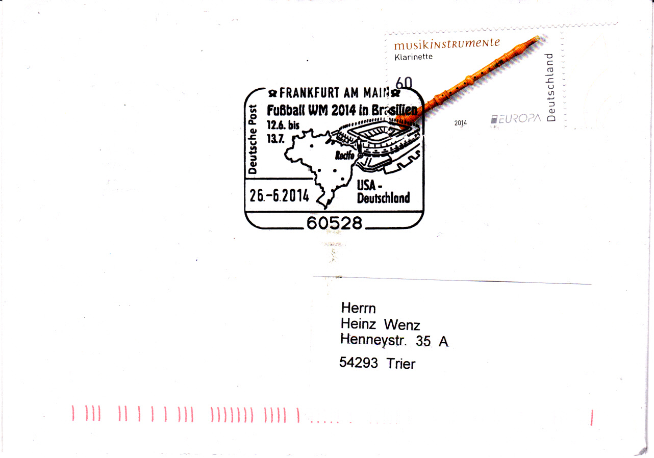 Hier folgt dann der von Holger bereits gezeigte SST diesmal auf Brief zum Spiel Deutschland-Ghana (2:2) am 21.6. 2014 21.00 Uhr MESZ in Fortaleza.