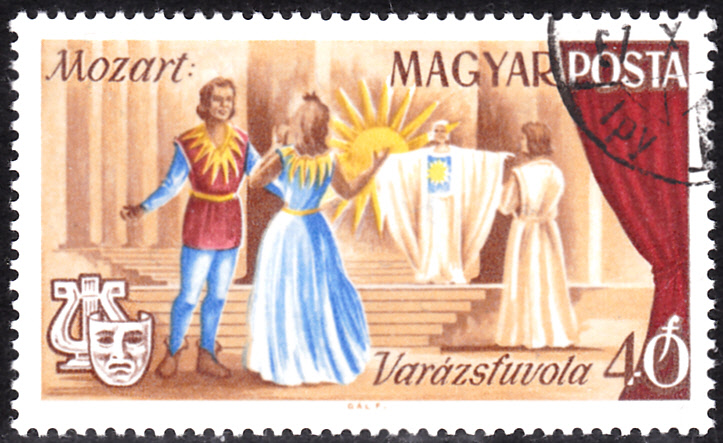 Der bereits auf Brief gezeigte Block aus Österreich zum 200. Todestag von Wolfgang Amadeus Mozart (MiNr Block 10) wurde bei diesem Exemplar in Salzburg mit einem Sonderstempel am Ausgabetag gestempelt. Im Stempelbild wird Mozart von der Seite gezeigt.
