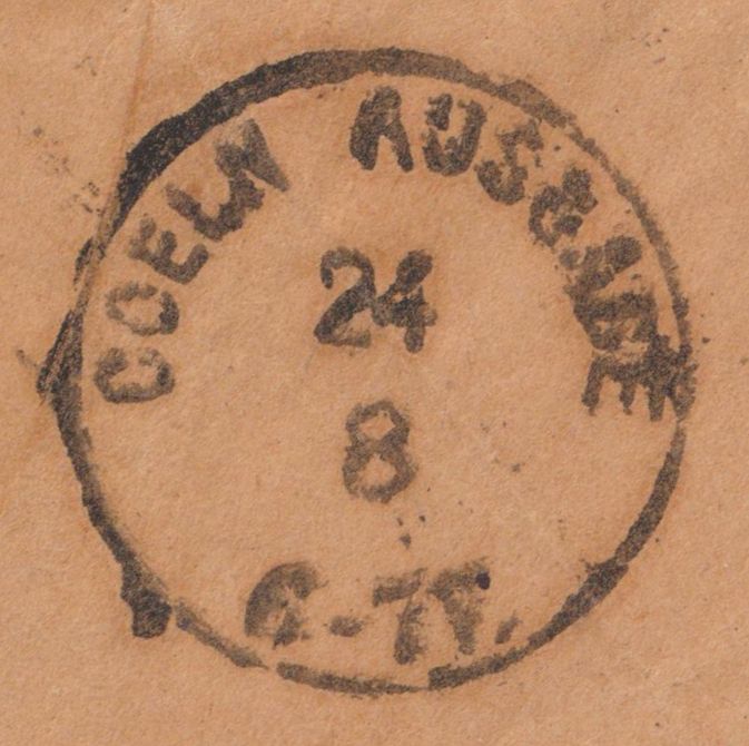 Die stimmt bis auf das Stempeldatum, denn das war nicht der 28.08., sondern der 23.08., wozu dann auch der am 24.08. rückseitig abgeschlagene nachverwendete preussische Kreisstempel "COELN AUSGABE" zeitlich passt!