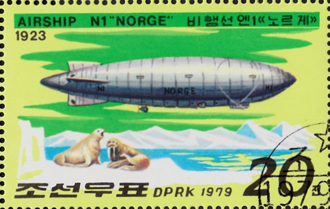 Auf dieser Marke aus Korea-Nord (MiNr 1817) ist das Luftschiff N 2 "Norge" abgebildet.