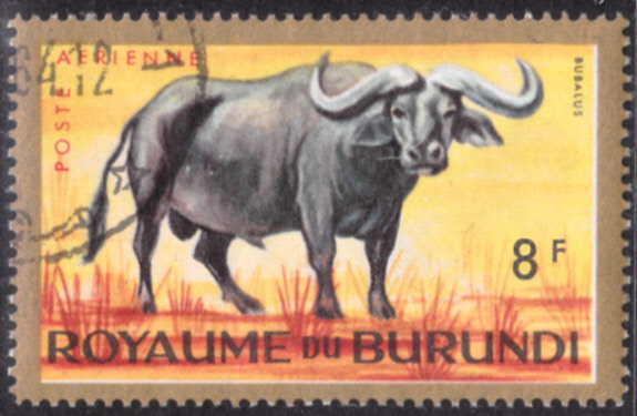 Im Markenbild dieser Marke aus Angola (MiNr 379) ist ein Kaffernbüffel (Syncerus caffer) abgebildet.