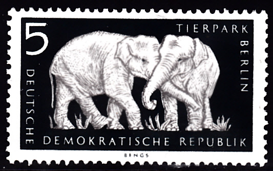 In der DDR ist 1956 in einer Markenserie für den Tiergarten Berlin eine Marke zu 5Pf (MiNr 551) mit zwei Indischen Elefanten (Elephas maximus) erschienen.