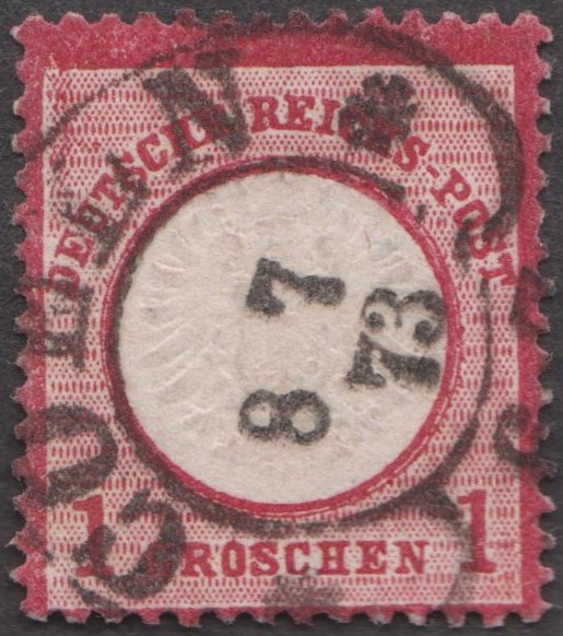 https://www.ebay.de/itm/Dts-Reichspost- ... true&rt=ncDie Entwertung erfolgte am 13.06.1873 per nachverwendetem NDP-Kreisstempel "MAINZ", Feuser NDP 640.