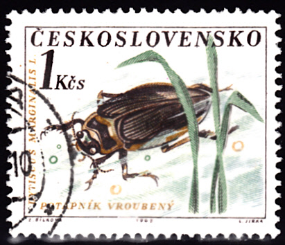 Einen weitereren Gelbrandkäfer (Dytiscus marginalis) können wir auf dieser Marke aus der Tschechoslowakei (MiNr 1374) sehen.