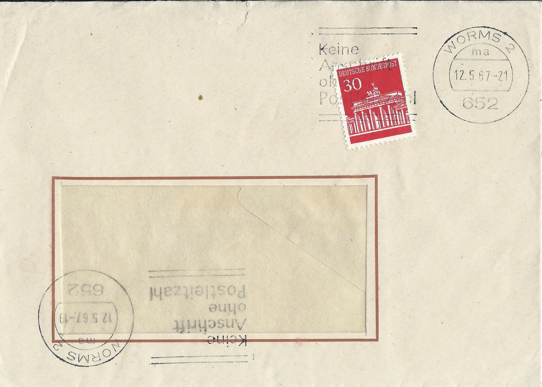 hier habe ich 2 Belege, bei denen ich selber noch am rätseln bin. Ich habe noch keine Erklärung gefunden, wie die jeweils zweiten Abschläge der Maschinenstempel in der Form auf die Umschläge gekommen sind. Technisch ist das eigentlich unmöglich, wenn man die Arbeitsweise einer Stempelmaschine kennt. Die stempelt nur immer die obere rechte Ecke der Briefe, wenn sie aufgestellt sind und eingezogen werden. Klar kann durch verkanten mal etwas schief stehen, aber so saubere Abschläge wie hier sind da normalerweise nicht machbar. Vielleicht hat ja noch jemand einen Lösungsvorschlag: