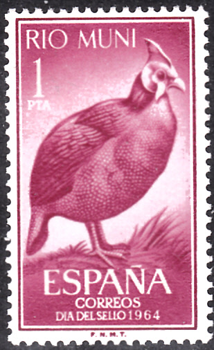 Auf einer Marke zu 1 Peseta (MiNr 58) wird ein Helmperlhuhn (Numida meleagris) gezeigt.