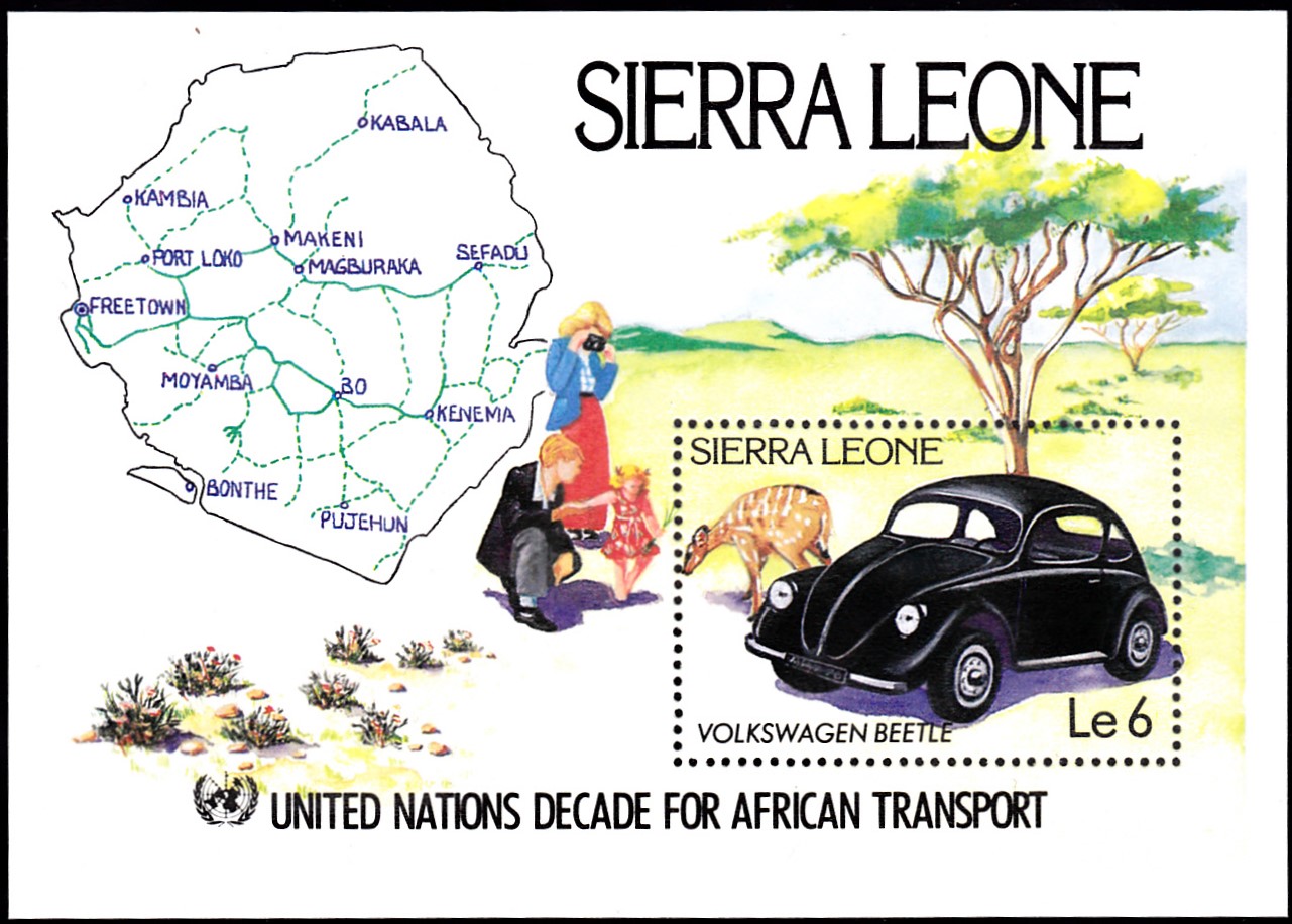 In Sierra Leone ist eine Marke (MiNr 758) in einem Block (MiNr Block 23) mit einem VW Käfer erschienen.