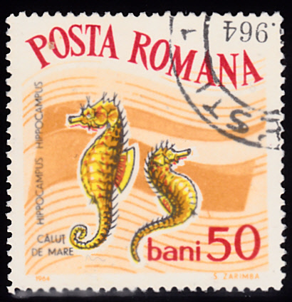 Die Serie aus Rumänien hat auch eine Marke (MiNr 2284) mit zwei Kurzschnäuzigen Seepferdchen (Hippocampus hippocampus), die in diesem Kapitel schon früher vorgestellt wurde.