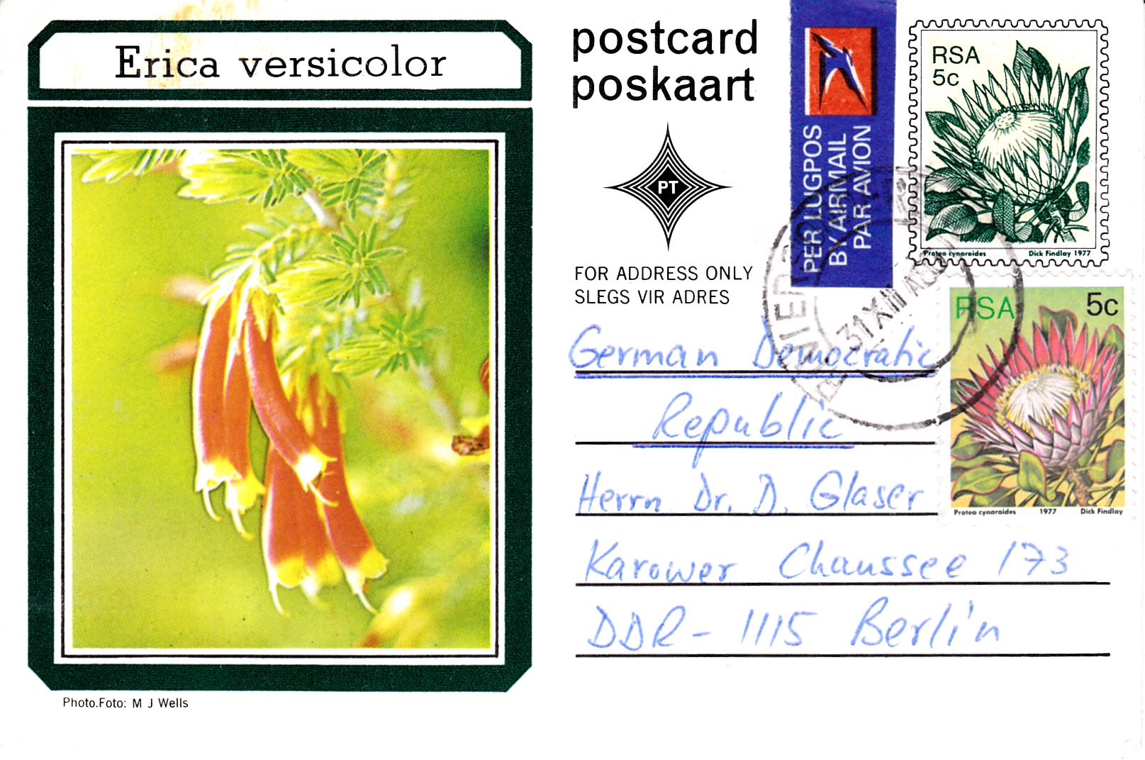 In Südafrika sind Bildpostkarten mit dem Wertstempel zu 5 Cent "Protea cynaroides" (wie Marke MiNr 516) erschienen, die als Bildzudruck Heidekräuter zeigen.