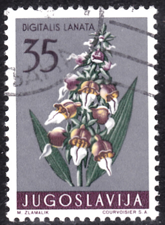 Diese Marke aus Jugoslawien (MiNr 817) bildet einen Wolligen Fingerhut (Digitalis lanata) ab.