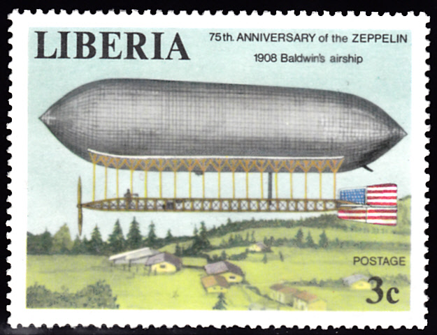 Auf einer Marken aus Liberia (MiNr 1055 A) wird das 1908 für die US-Streitkräfte gebaute Luftschiff "Signal Corps Airship No. 1 (SC-1)" gezeigt.