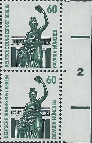 Der Wert Sehenswürdigkeiten zu 60 Pf im postfrischen senkrechten Paar vom rechten Bogenrand und Formnummer 2: