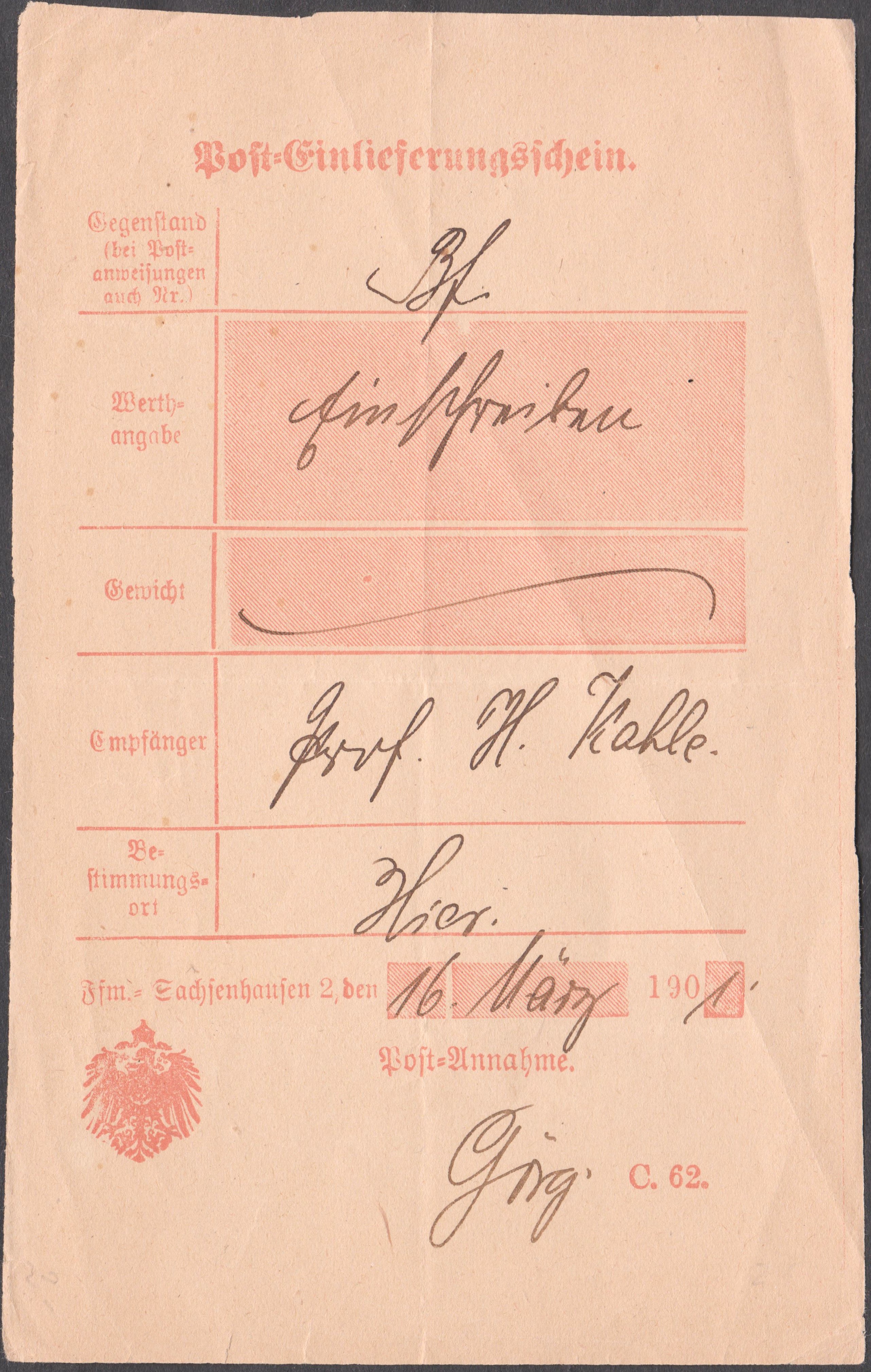 Foren-Übersicht Fragen und Diskussion Deutschland Deutschland bis 1945 Deutsches Reich 1872 - 1945 Posteinlieferungsschein