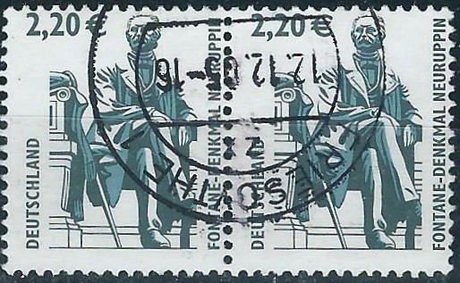 aus der Serie Sehenswürdigkeiten in €-Währung ist mir ein waagerechtes Paar aufgefallen, welches eine starke Dezentrierung nach rechts oben hin aufweist. So etwas sieht man auch nicht alle Tage, zumal es auch noch aus dem Bedarf stammt. Gestempelt wurde es in Friesoythe am 12.12.05. Auch hier gilt wieder: Kein großer monetärer Wert, aber im Album ein Hingucker!