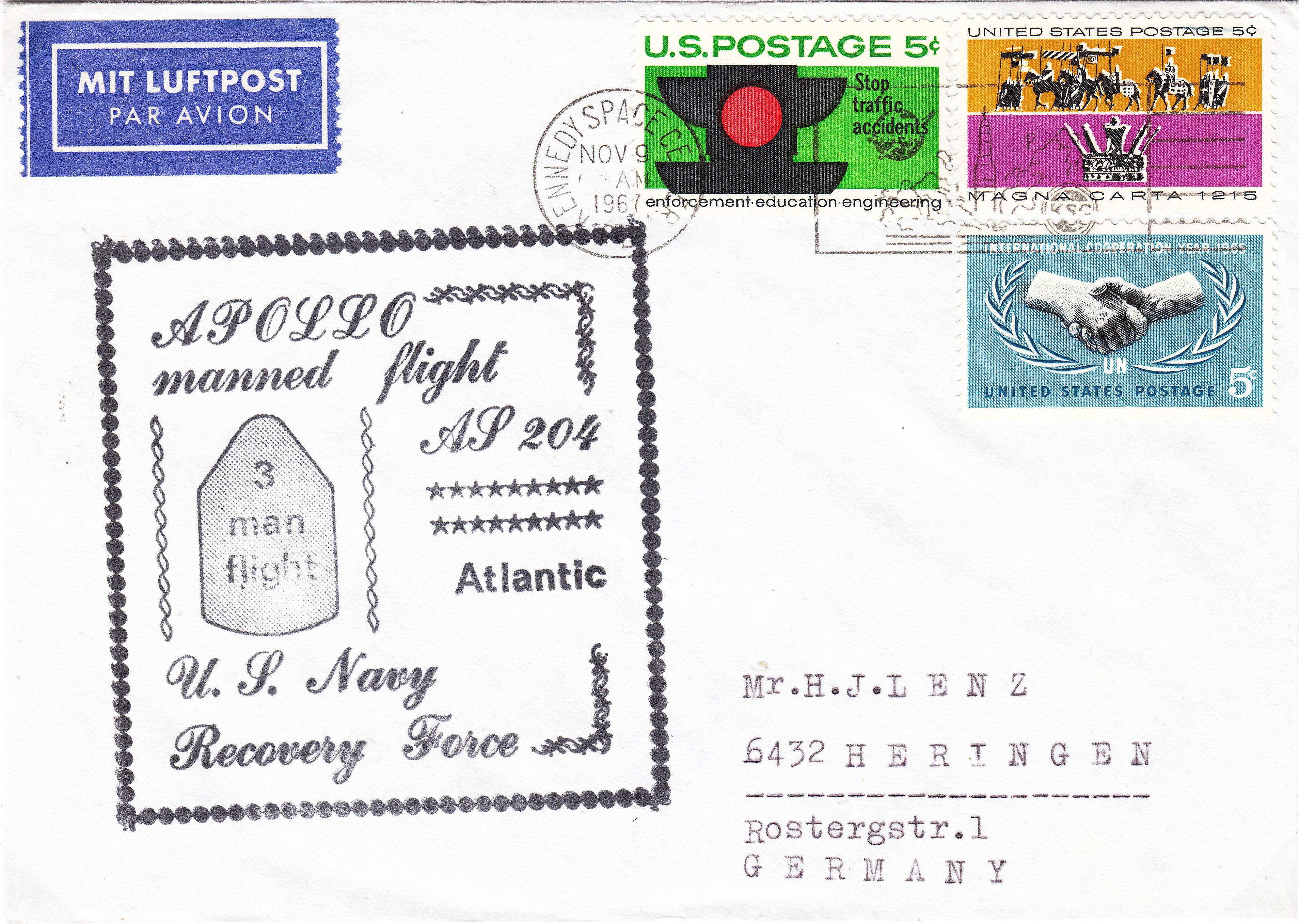 Die gesamte zu diesem Zweck eingelieferte Post wurde zentral zum KENNEDY SPACE CENTER geleitet und dort bis zur nächsten APOLLO-Mission gelagert, um dann am 09.11.1967 abgestempelt zu werden.