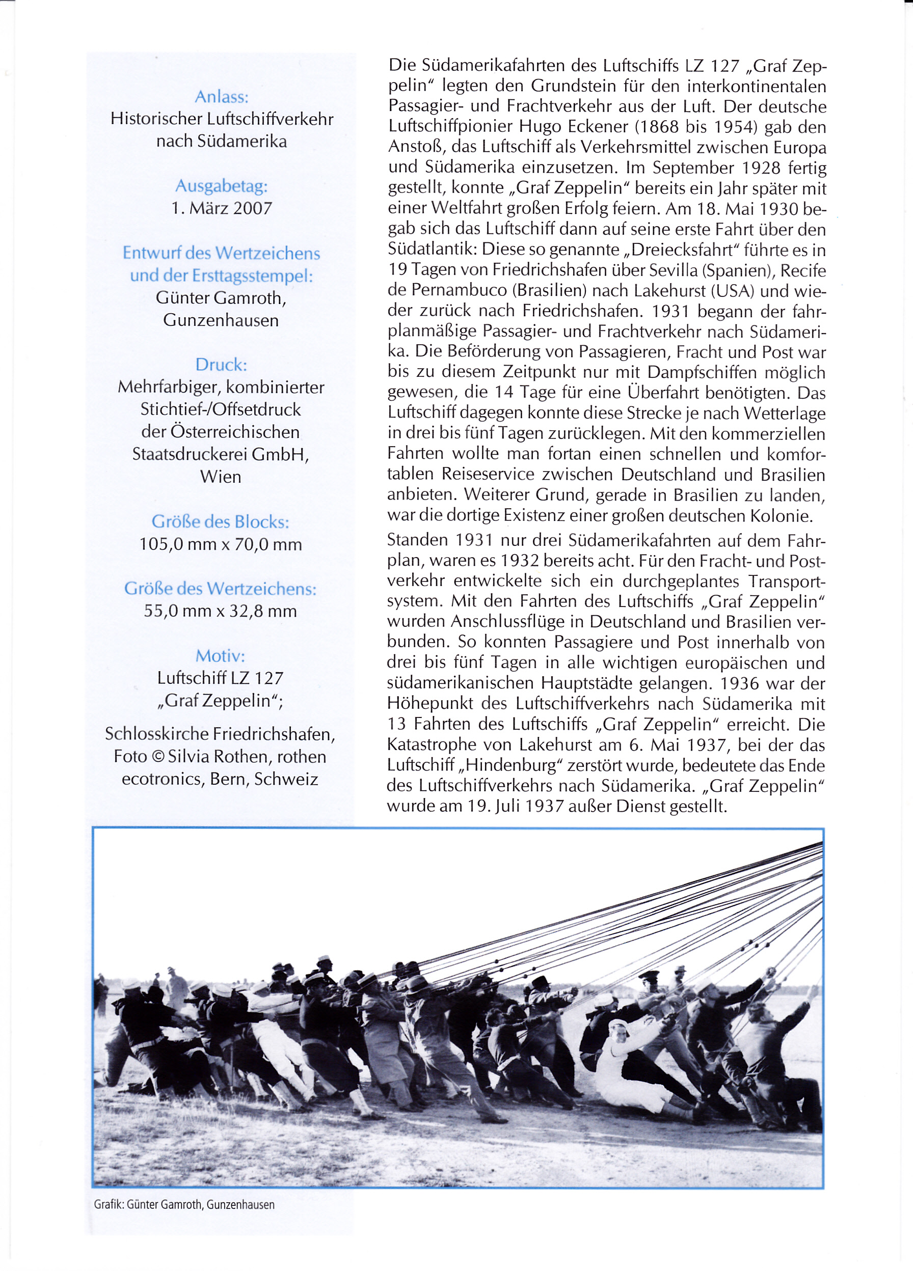 Im Hintergrund wird das Luftschiff LZ 127 Graf Zeppelin gezeigt, hier mit ESST auf ETB 8/1992: