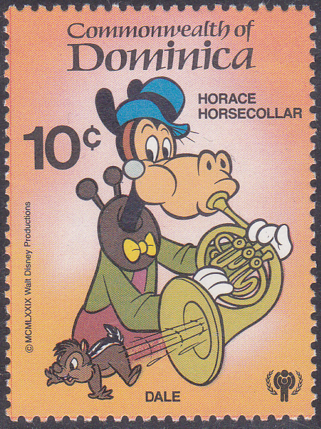 In einer Serie zum Internationalen Jahr des Kindes ist 1981 in Dominica diese Marke (MiNr 663 mit der Abbildung Rudi Ross spielt auf einem Horn erschienen. Zu sehen ist auf der Marke auch noch Ahörnchen, das sich im Horn versteckt hatte und jetzt aus dem Horn geblasen wird.
