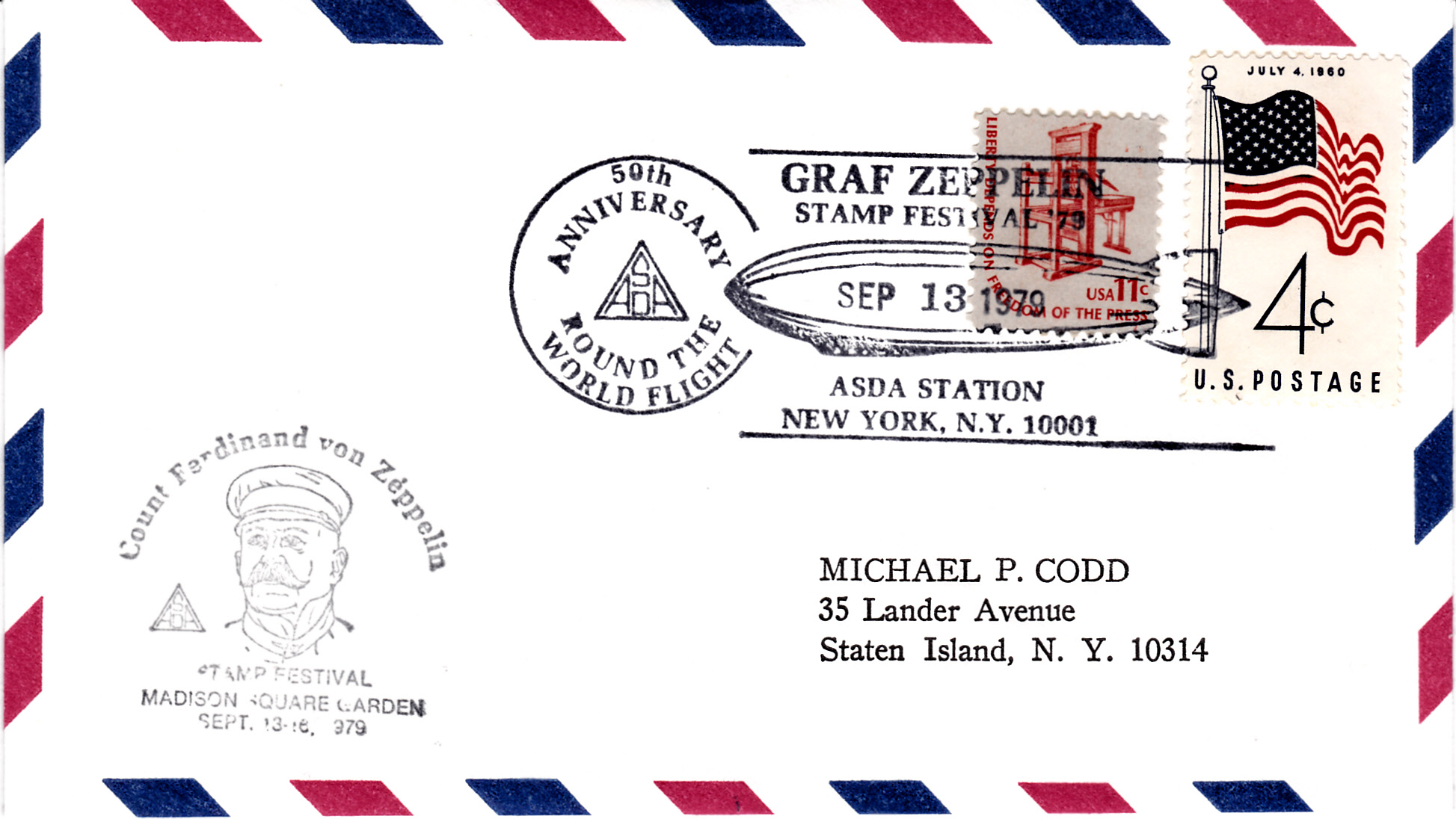 Im Sonderstempel aus New York vom 13.9.1979 zum Jubiläum "50 Jahre Weltfahrt von LZ 127" ist ebenfalls LZ 127 abgebildet.