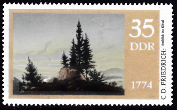 In der DDR erschien zum 200. Geburtstag von Caspar David Friedrich in einer Serie auch diese Marke (MiNr 1958) mit seinem Gemälde "Zwei Männer in Betrachtung des Mondes".