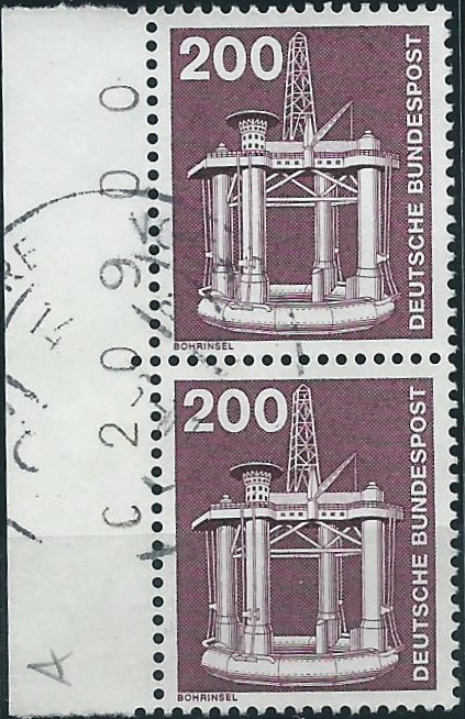 Der Wert zu 200 Pf im senkrechten Paar vom linken Bogenrand und 5-stelligem Bogenzähler mit vorangestelltem Buchstaben C. Gestempelt wurde mit einem unleserlichem Tagesstempel: