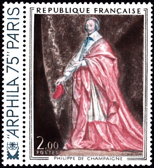 Auf einer Marke aus Frankreich (MiNr 1867) wird das Gemälde "Kardinal von Richelieu" von Philippe de Champaigne gezeigt. Die Marke wurde mit einem schmalen Zierfeld zur Werbung für die "ARPHILA 75" in Paris gedruckt (MiNr 1867 Zf).