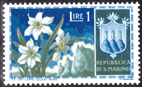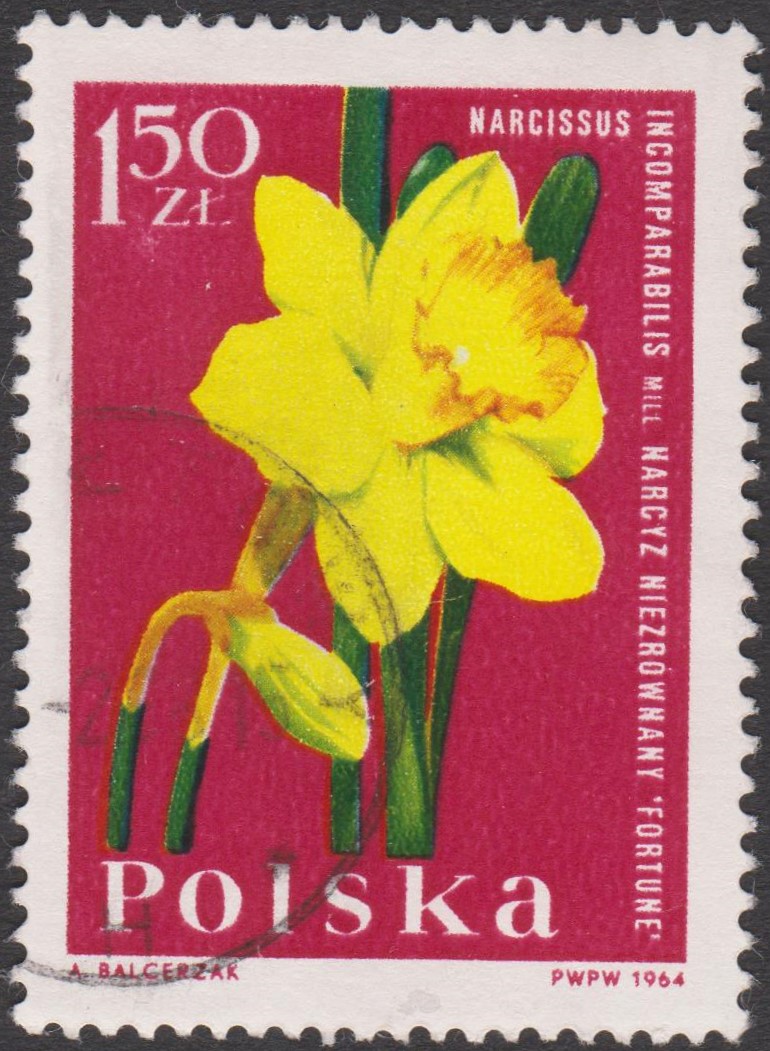 Auf dieser Marke aus Rumänien (MiNr 3027) sind zwei Stern-Narzissen (Narcissus radiiflorus) der Unterart Narcissus radiiflorus var. stellaris zu sehen.