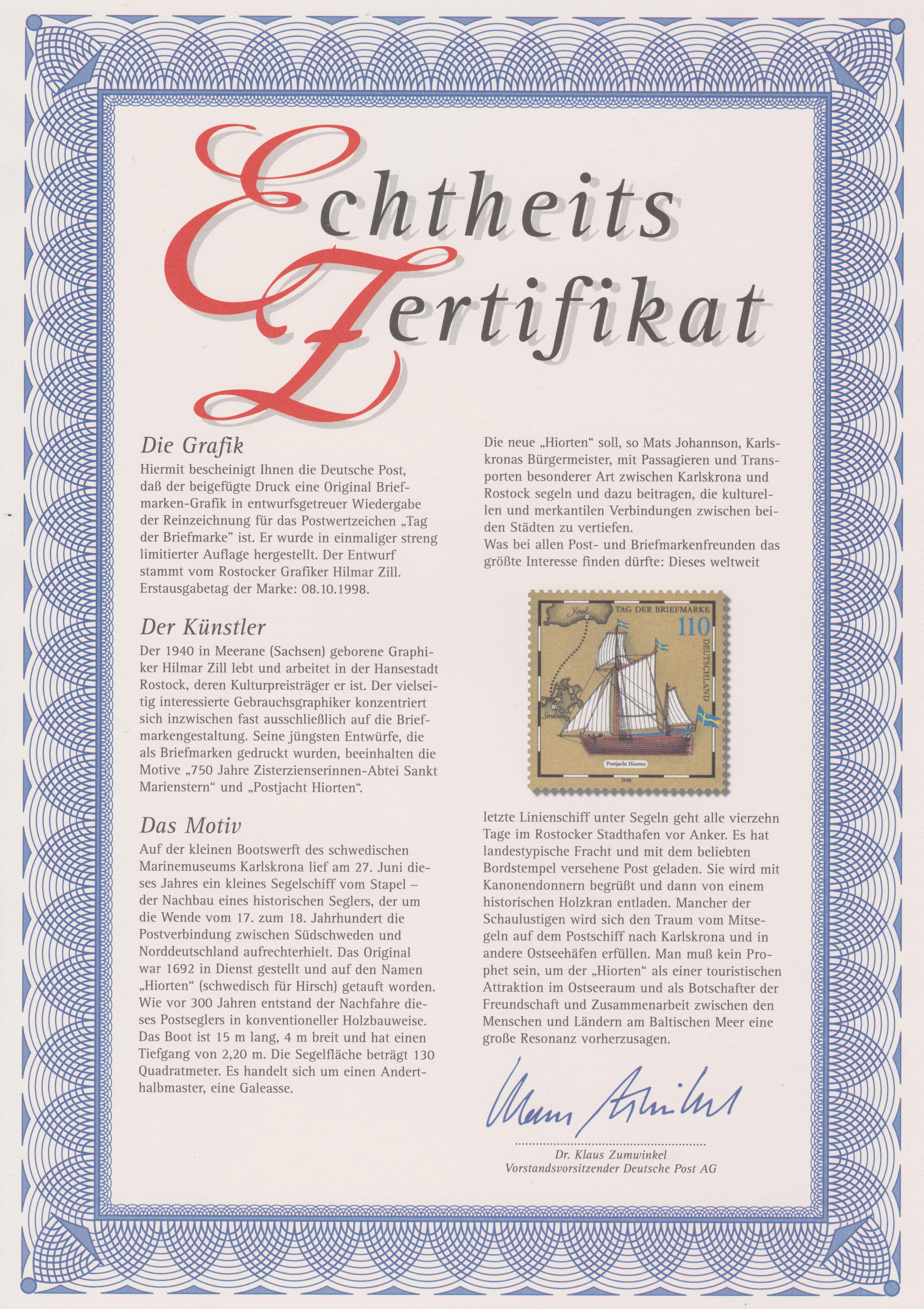 Ganzsache des LV der Philatelisten Mecklenburg-Vorpommern e.V. mit dem dazu passenden Sonderstempel vom 24.10.1998 aus Rostock zum Tag der Briefmarke 1998.