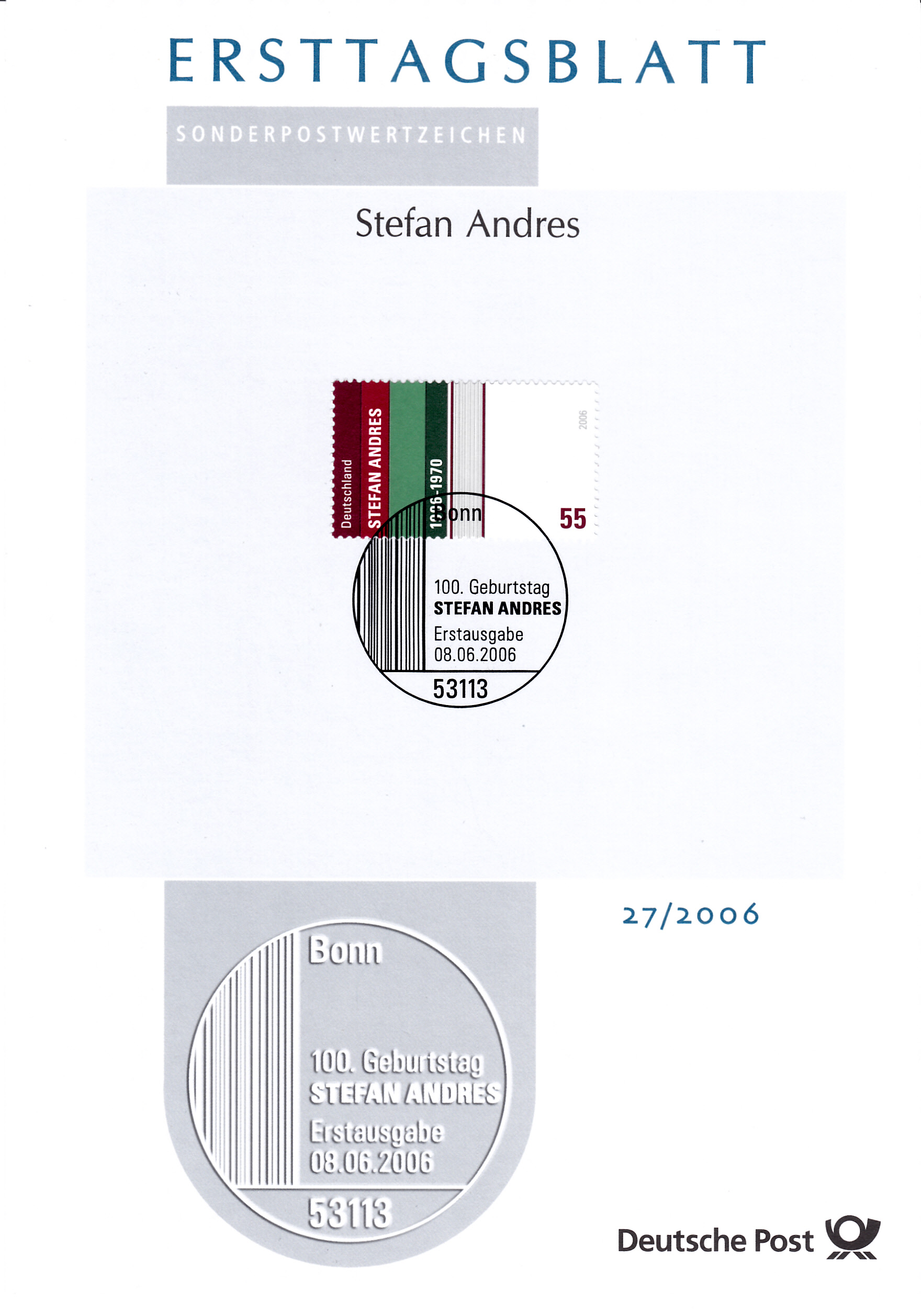 Zum 100. Geburtstag erschien bei der Deutschen Post eine Marke (MiNr 2545), die im Bild einige farbige Buchrücken zeigt.