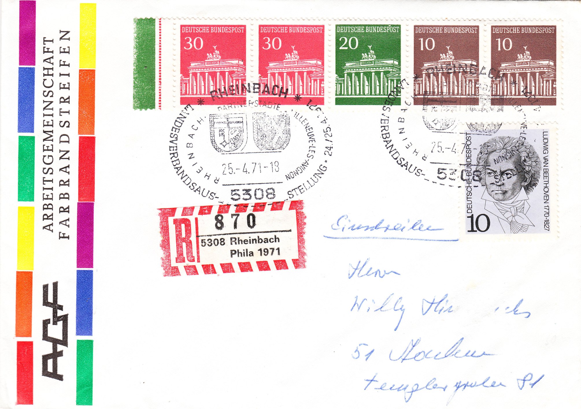 Hier ein echter "Anfängerbeleg" zum Thema Bogenrandzudrucke, denn man achte auf den grellbunten, wirklich nicht zu übersehenden Absendereindruck: