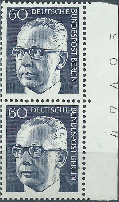 Und ein Oberrandstück zu 160 Pf mit Reihenwertzähler 24,00, ebenfalls auf einem Luftpostbrief. Gestempelt wurde am 8.3.72 mit dem Ersttagssonderstempel Berlin.