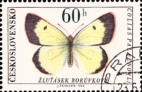 Auf dieser Marke aus der Tschechoslowakei ist ein Zitronengelber Heufalter (Colias palaeno) zu sehen.