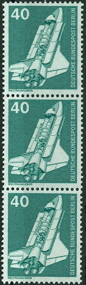 Erstausgabetag der 40 Pfennig - Berlin war der 15.5.1975. Hier ein postfrischer senkrechter 3er-Streifen.